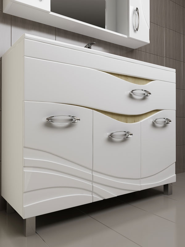 Лаконичная форма и удобная система хранения позволит с комфортом использовать тумбу в Вашей ванной комнате. Идеально подходит для интерьера в современном стиле.