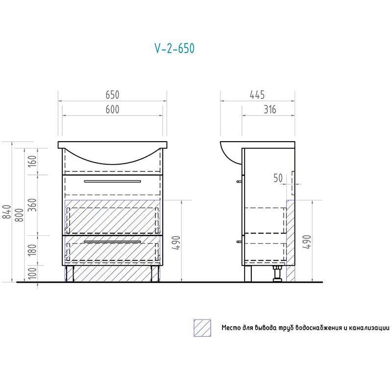 Тумба под раковину Vigo Vito шириной 65 см. Артикул: V-2-650(Балтика).