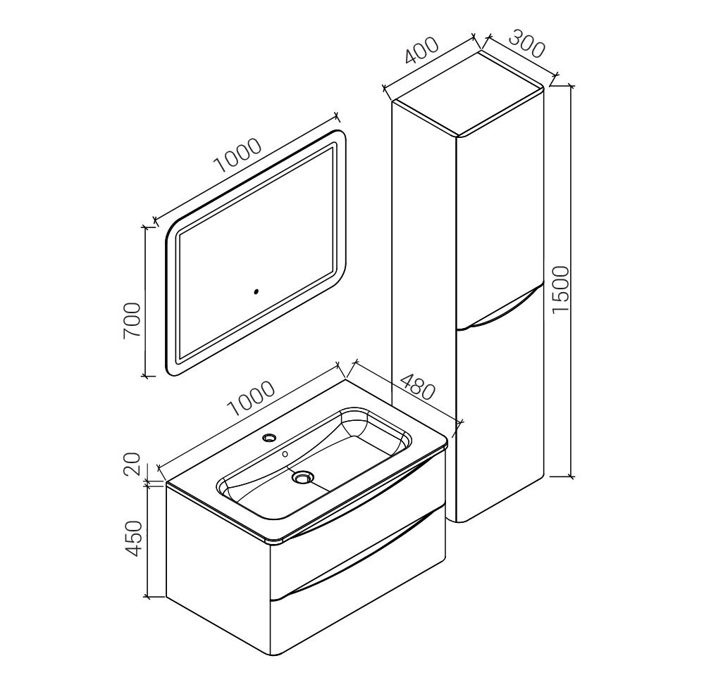 - Габариты корпуса тумбы (ВхШхГ): 450х1000х480 мм.