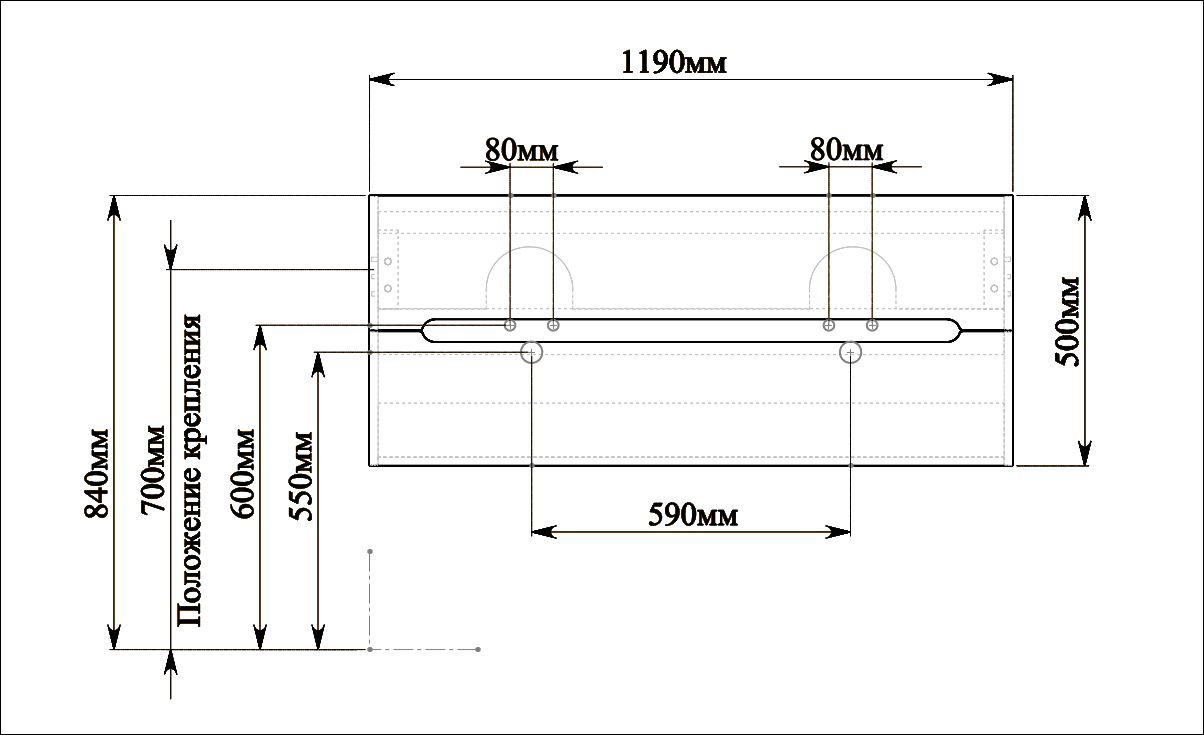 - Габариты (ШхВхГ): 119 x 50 x 46 см.