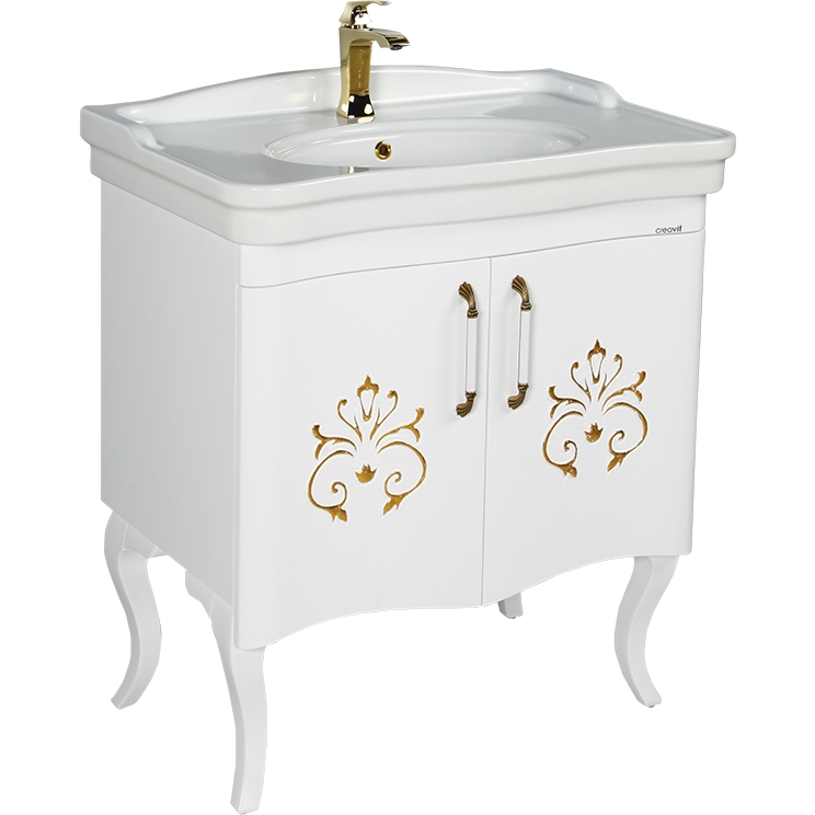 Тумба с раковиной Creavit Antik 80 AN0080.02.BB Белая с декором