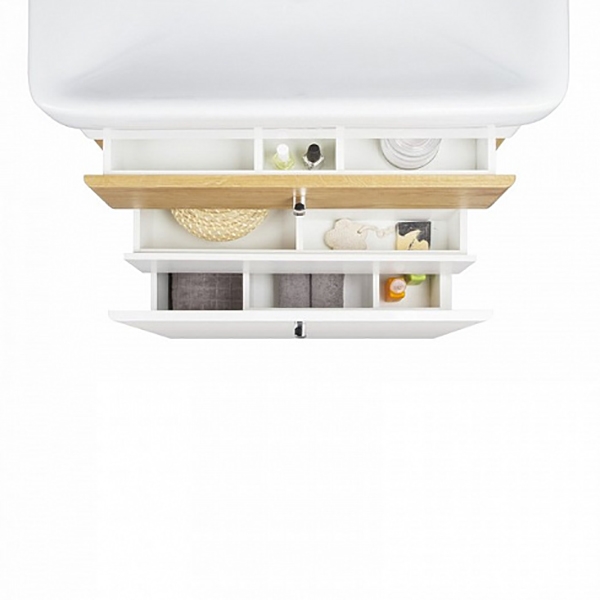 Тумба с выдвижными ящиками с доводчиком для тихого и плавного закрывания.