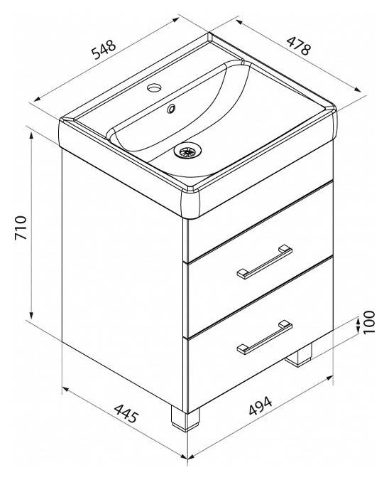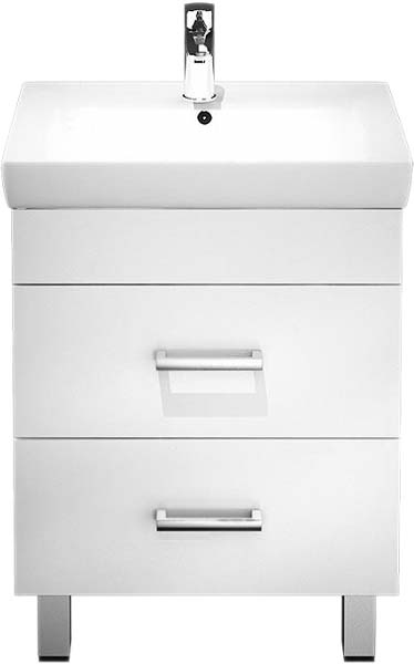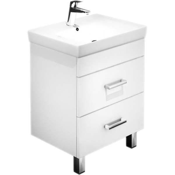 Тумба с раковиной Iddis Custo 55 CUS55W0i95K с двумя ножками, с двумя выдвижными ящиками. Предназначена для использования в ванных комнатах с повышенной влажностью. Влагостойкие материалы повышенной плотности. Высококачественные немецкие скрытые направляющие с доводчиками плавно и бесшумно закрывают ящики.