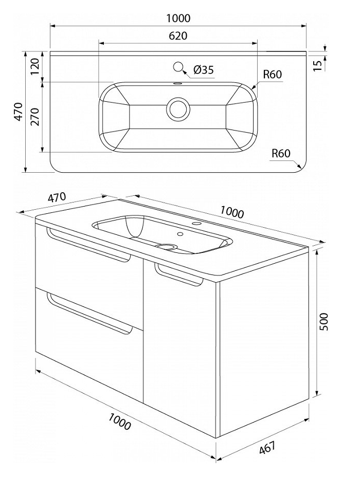 - Размеры (ШхГхВ): 100х46,7х50 см.