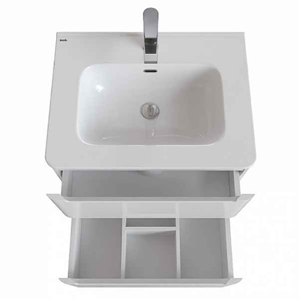 Подвесная тумба с раковиной Iddis Edifice 60 EDI60W0i95K с двумя выдвижными ящиками. Предназначена для использования в ванных комнатах с повышенной влажностью. Влагостойкие материалы повышенной плотности. Высококачественные немецкие скрытые направляющие и петли с доводчиками плавно и бесшумно закрывают ящики. Внутреннее пространство тумбы продумано до мелочей для рационального хранения вещей.