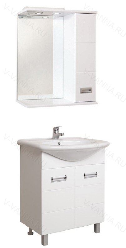 Тумба с раковиной Onika Балтика 65.10 К, распашные дверцы, полка внутренняя, ручки врезные - металл (хром), ножки передние - пластик (хром), ножки задние (регулируемые) - пластик.