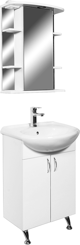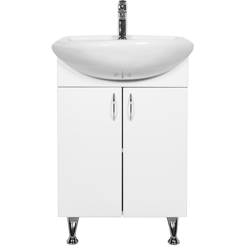 Тумба с раковиной на ножках Orange Кларис 57 Kl-55TUW+RA с двумя распашными дверцами. Предназначена для использования в ванных комнатах с повышенной влажностью. Изящные ручки и идеально прилегающие друг к другу распашные дверцы создают гармонию и домашний уют. Высококачественная МДФ-пленка на фасаде не выцветает со временем и не портится от влаги. Удачное сочетание функциональности и эргономичности.