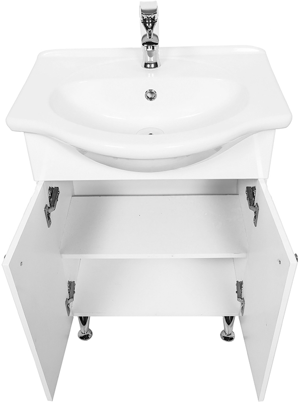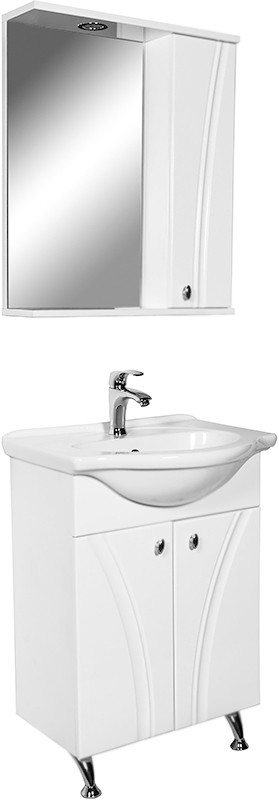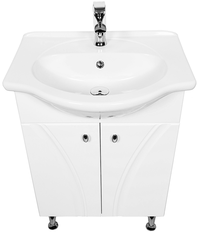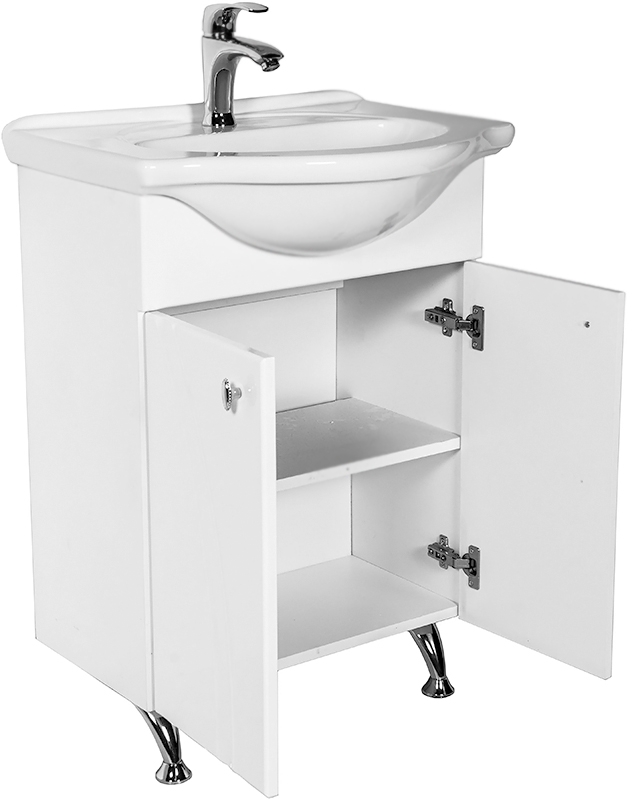 Тумба с раковиной на ножках Orange Лотос 60 Lo-60RA с двумя распашными дверцами. Предназначена для использования в ванных комнатах с повышенной влажностью. Оригинальный внешний вид и поразительная вместительность. Небольшие удобные и изящные ручки. Качественные материалы. На поверхности практически не остается грязных следов.
