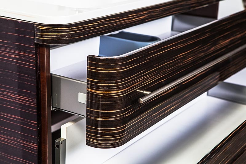 Ящики оснащены механизмом полного выдвижения с доводчиками.