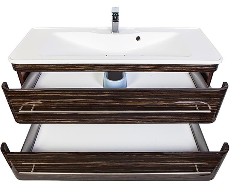Подвесная тумба стойко выдержит постоянное воздействие влаги и не подвергнется деформациям подчеркнув общий вид санузла.