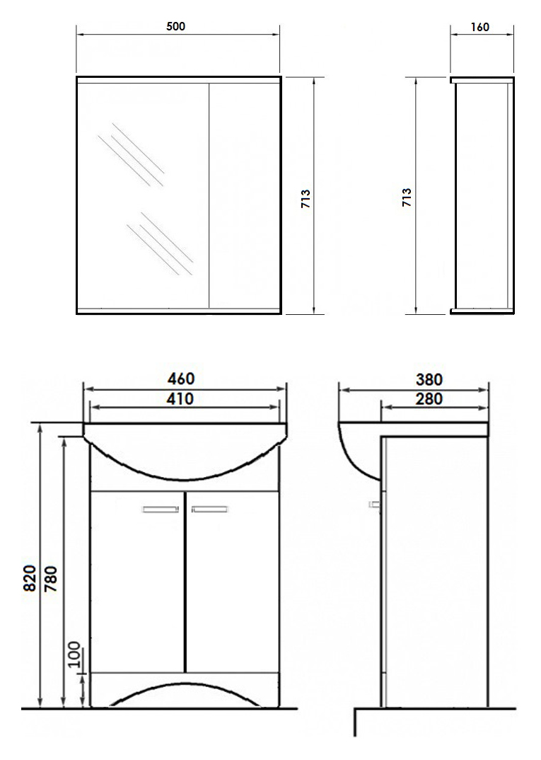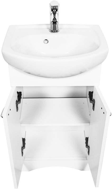 - Размеры тумбы с раковиной (ШхГхВ): 46x38x82 см.