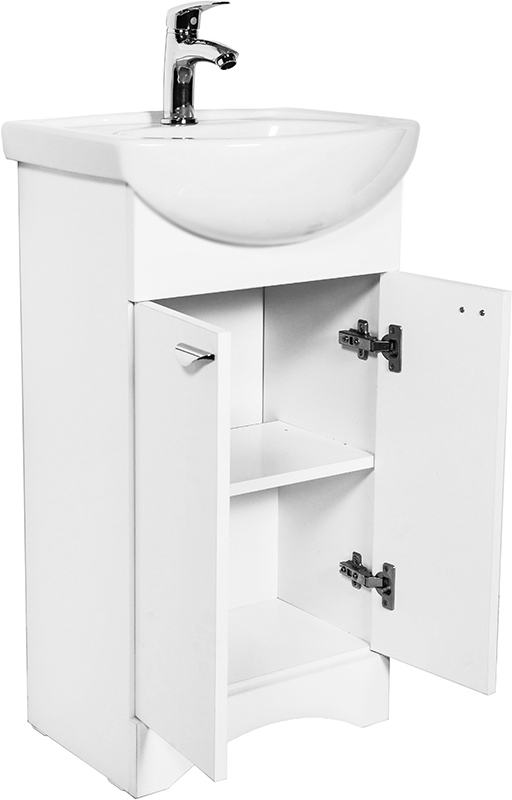 Напольная тумба с раковиной Orange Сити 46 Si-45TU+RA с двумя распашными дверцами. Предназначена для использования в ванных комнатах с повышенной влажностью. Минималистичный дизайн, продуманная эргономика и демократичная цена. Безупречное качество сборки: идеальное прилегание деталей и ровные стыки.