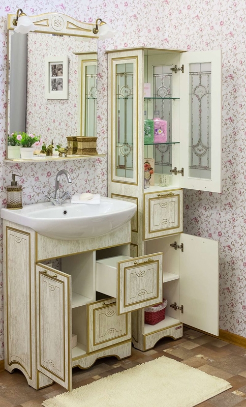 Тумба с раковиной Sanflor Адель 65 Н0000000554 Белая с патиной Золото