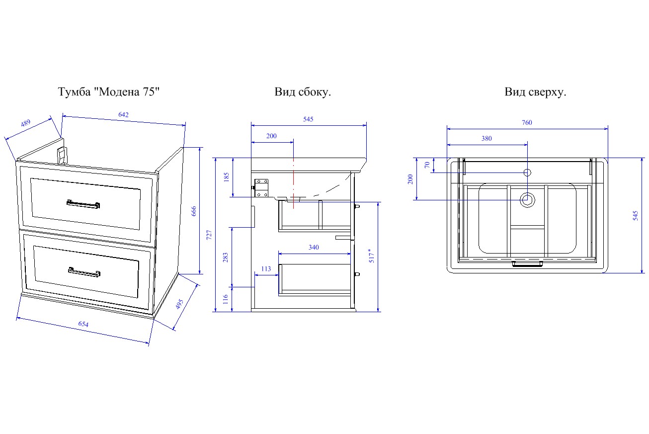 Габариты корпуса тумбы (ШхВхД): 76 х 73 х 54,5 см.