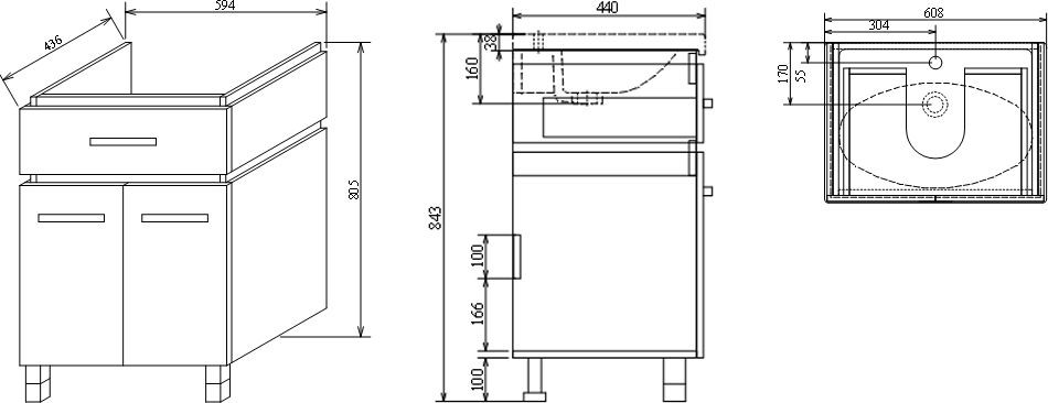 - Один выдвижной ящик с двумя отсеками, две распашные дверцы.
