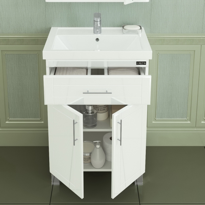 Тумба с раковиной СанТа Дублин 60 1 ящик Белая