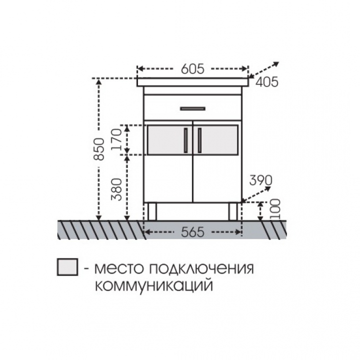 Габариты корпуса тумбы (ШхВхД): 61 х 85 х 41 см.