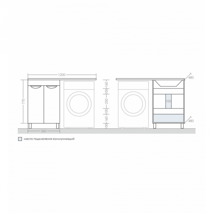- Размеры тумбы (ШхВхГ): 56х77х48 см.