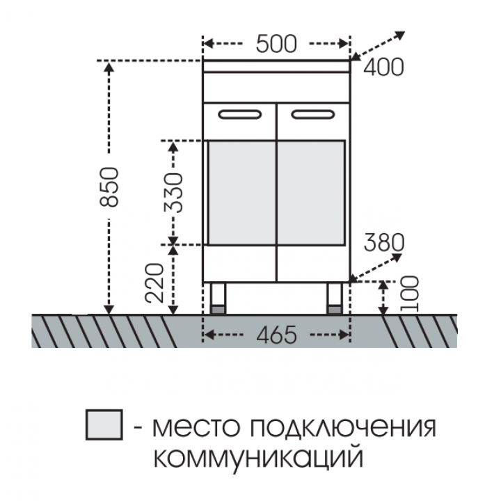 Габариты корпуса тумбы (ШхВхД): 50 х 85 х 40 см.