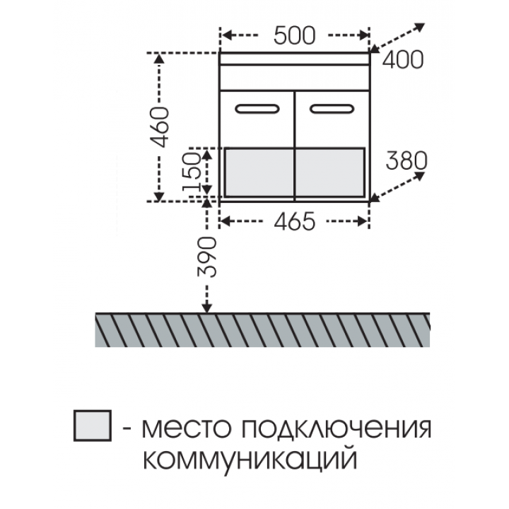 Габариты корпуса тумбы (ШхВхД): 50 х 46 х 40 см.