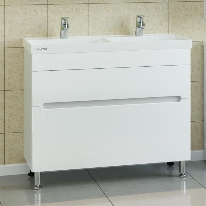 Тумба с раковиной Санта Лондон 100/2 2 ящика изготовлена из качественных материалов в современном элегантном стиле. Поможет в создании ультрамодной ванной комнаты с сохранением актуальной функциональности. Предназначена для использования в условиях повышенной влажности.