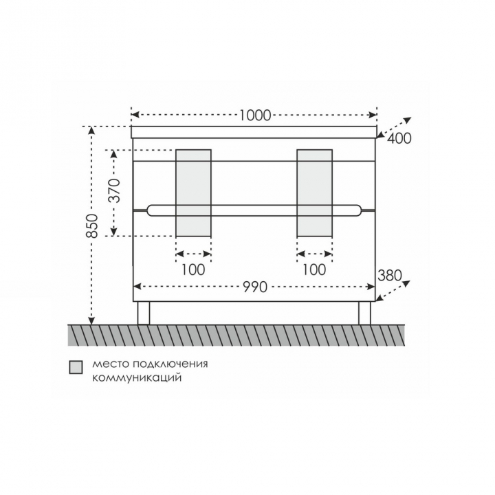 Габариты корпуса тумбы (ШхВхД): 100 х 85 х 40 см.
