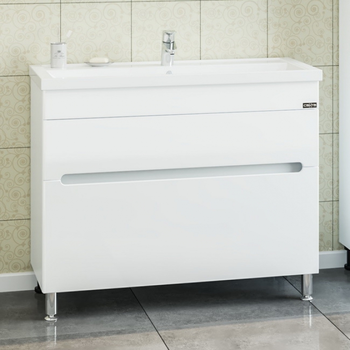 Тумба с раковиной Санта Лондон 100 2 ящика изготовлена из качественных материалов в современном элегантном стиле. Поможет в создании ультрамодной ванной комнаты с сохранением актуальной функциональности. Предназначена для использования в условиях повышенной влажности.
