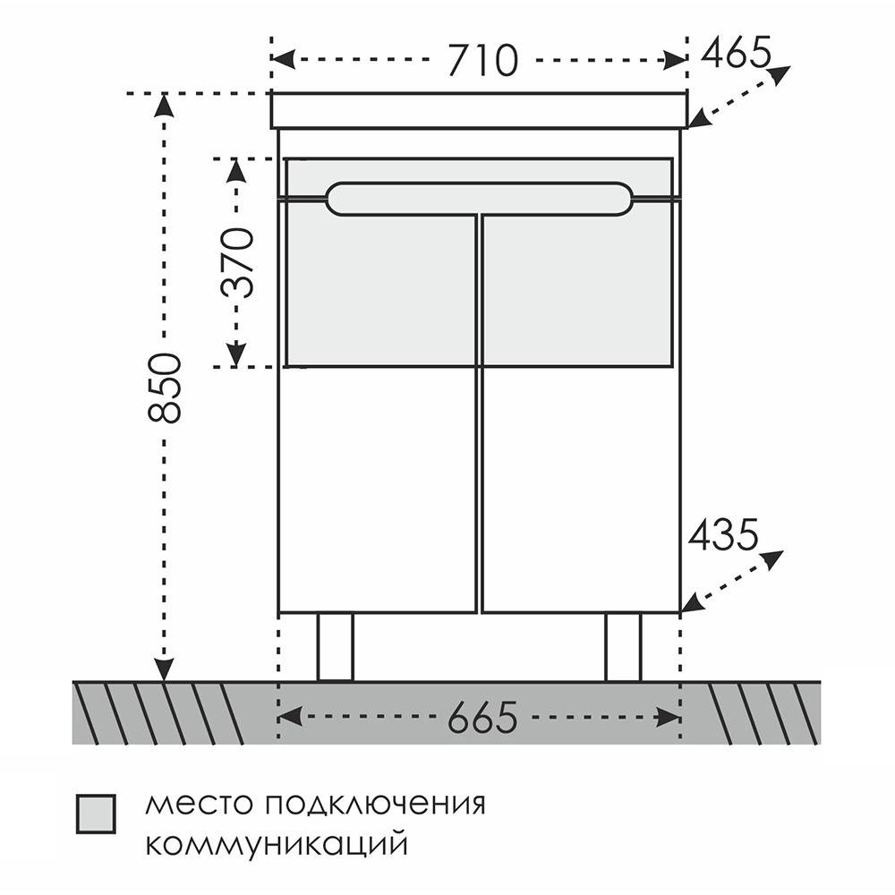 - Габариты корпуса тумбы (ШхВхД): 71 х 85 х 46,5 см.