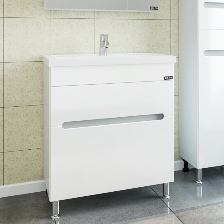 Тумба с раковиной Санта Лондон 70 2 ящика изготовлена из качественных материалов в современном элегантном стиле. Поможет в создании ультрамодной ванной комнаты с сохранением актуальной функциональности. Предназначена для использования в условиях повышенной влажности.