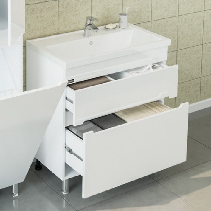 Тумба с раковиной СанТа Лондон 80 2 ящика Белая