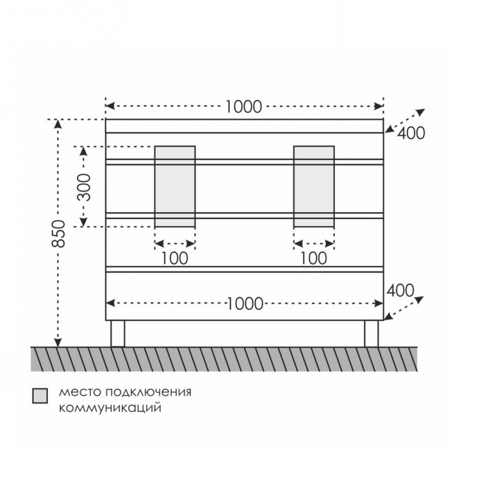 Габариты корпуса тумбы (ШхВхД): 100 х 85 х 40 см.