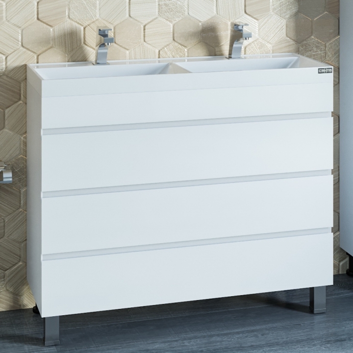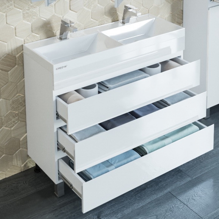 Тумба оснащена механизмами плавного и бесшумного закрытия, направляющими скрытого монтажа.