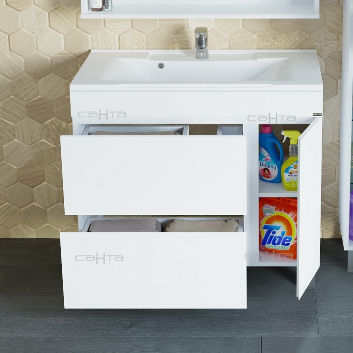 Тумба с раковиной СанТа Марс 90 700252 Белая