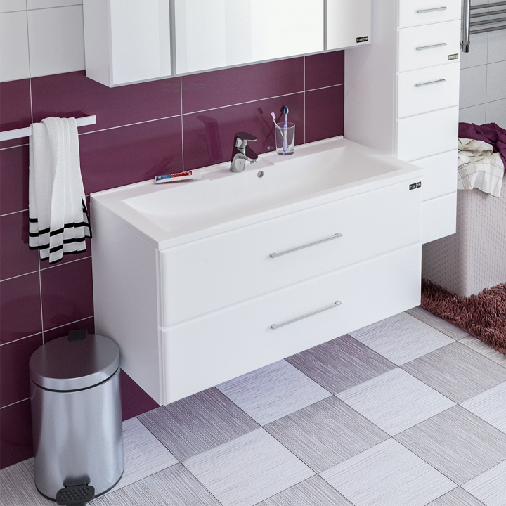 Тумба с раковиной СанТа Омега 100 2 ящика подвесная Белая