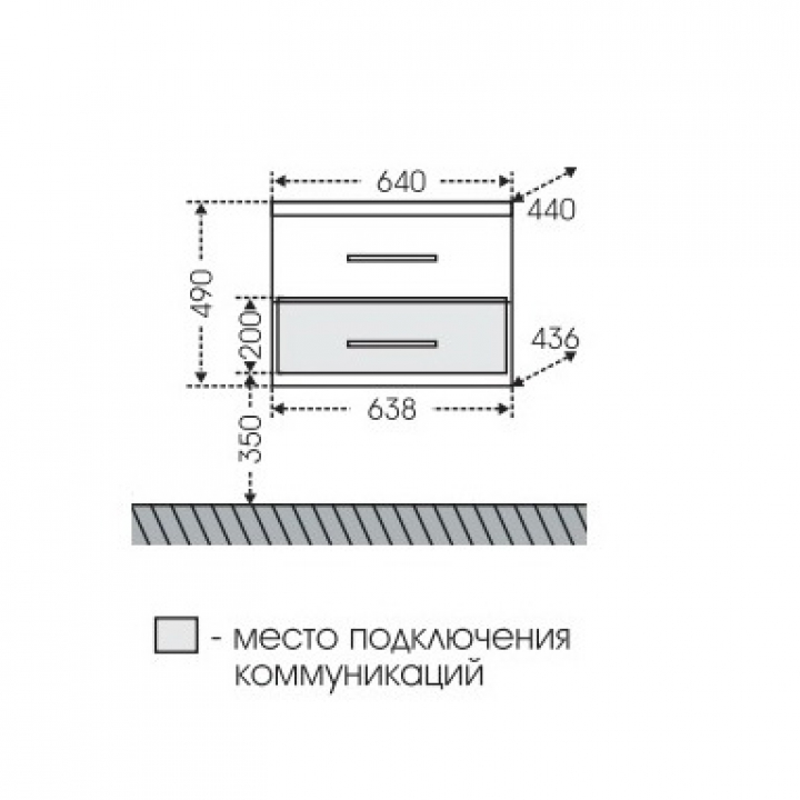 Габариты корпуса тумбы (ШхВхД): 64 х 49 х 44 см.