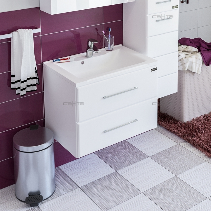 Тумба с раковиной СанТа Омега 65 2 ящика подвесная Белая