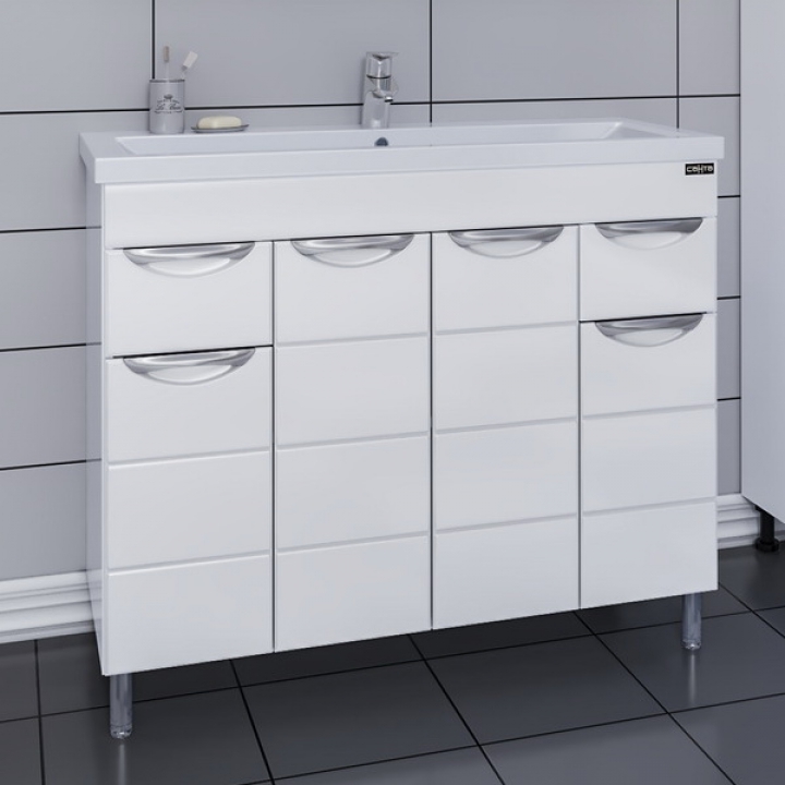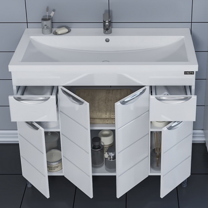 Тумба с раковиной Санта Родос 100 изготовлена из качественных материалов в современном элегантном стиле. Поможет в создании ультрамодной ванной комнаты с сохранением актуальной функциональности. Предназначена для использования в условиях повышенной влажности.