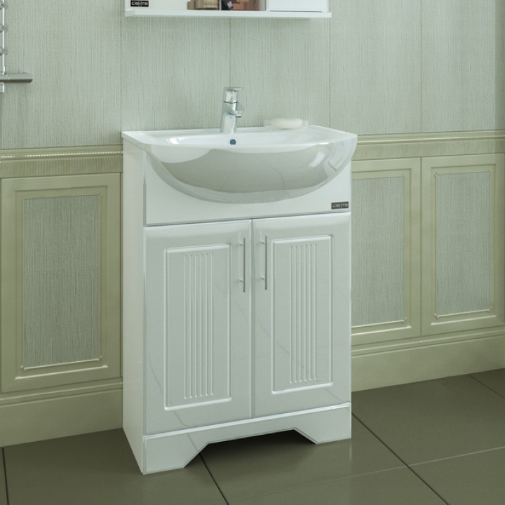 Тумба с раковиной СанТа Сиэтл 60 на цоколе Белая