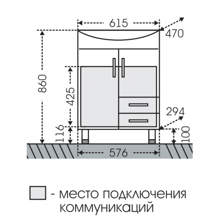Габариты корпуса тумбы (ШхВхД): 62 х 86 х 47 см.