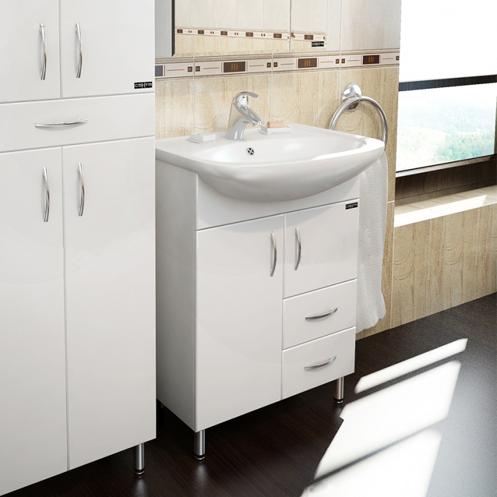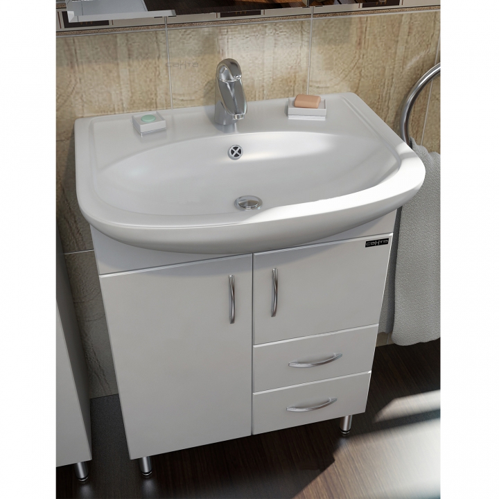 Тумба с раковиной Санта Сити 60 2 ящика изготовлена из качественных материалов в современном элегантном стиле. Поможет в создании ультрамодной ванной комнаты с сохранением актуальной функциональности. Предназначена для использования в условиях повышенной влажности.