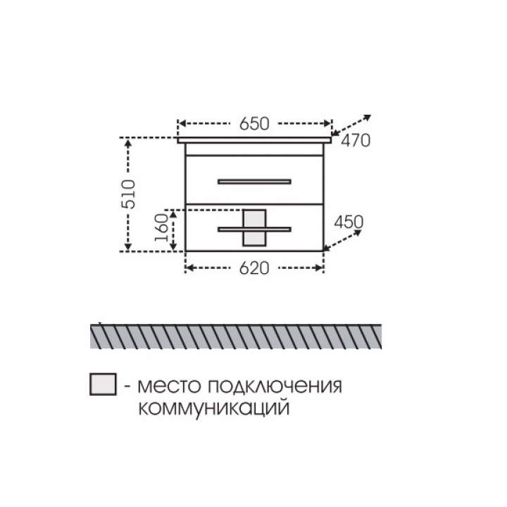Габариты корпуса тумбы (ШхВхД): 65 х 51 х 47 см.