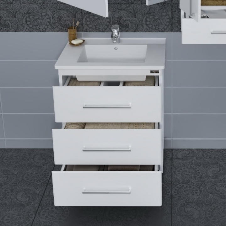 Тумба с раковиной СанТа Вегас 65 3 ящика Белая