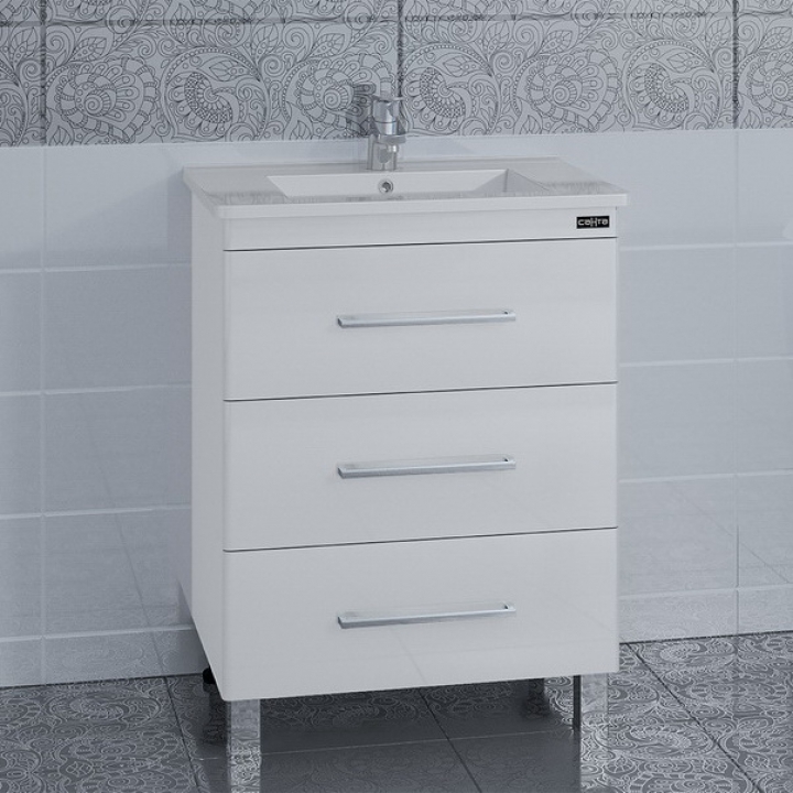 Тумба с раковиной Санта Вегас 65 3 ящика изготовлена из качественных материалов в современном элегантном стиле. Поможет в создании ультрамодной ванной комнаты с сохранением актуальной функциональности. Предназначена для использования в условиях повышенной влажности.