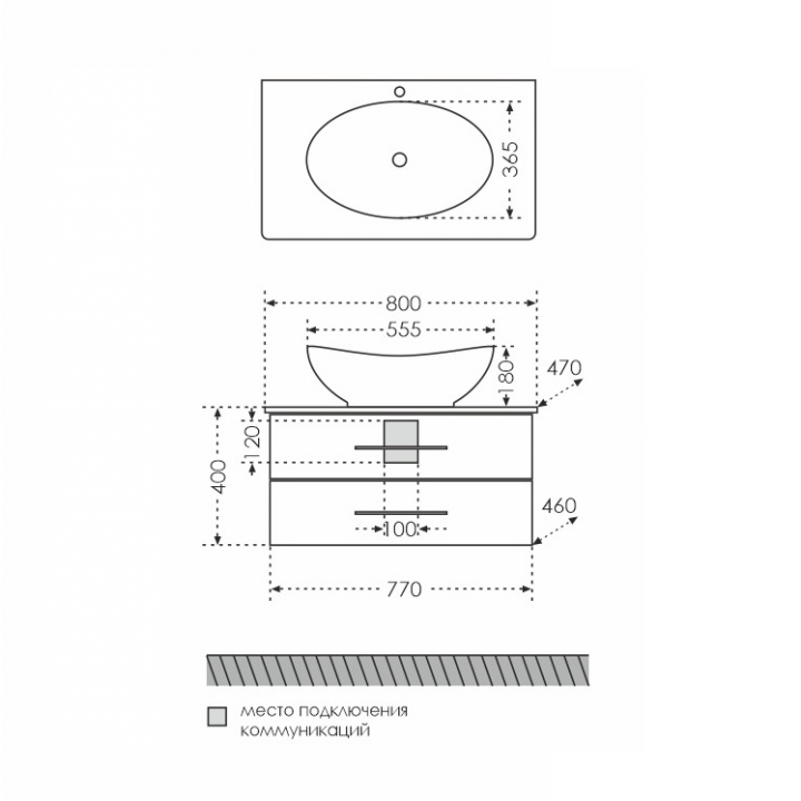 - Размеры (ШхВхГ): 80х40х47 см.