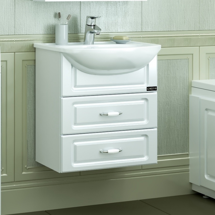 Тумба с раковиной СанТа Верона 50 2 ящика подвесная Белая