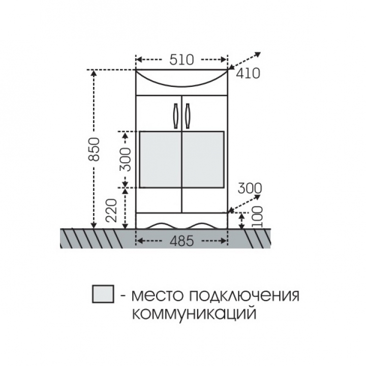 Габариты корпуса тумбы (ШхВхД): 50 х 85 х 41 см.