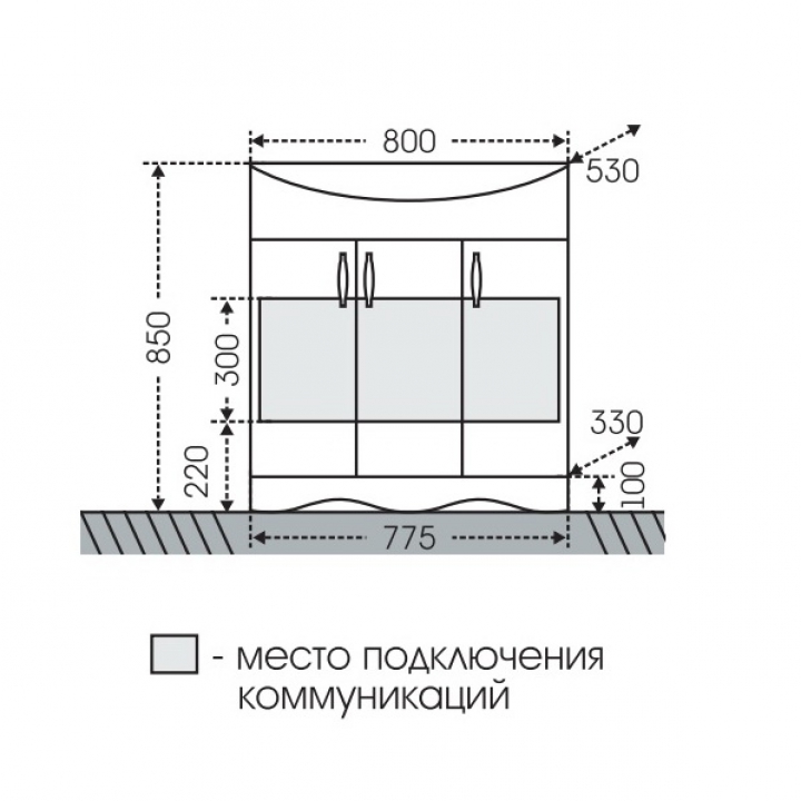 Габариты корпуса тумбы (ШхВхД): 80 х 85 х 53 см.