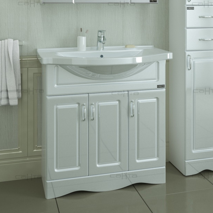 Тумба с раковиной Санта Верона 80 из качественных материалов в современном элегантном стиле. Поможет в создании ультрамодной ванной комнаты с сохранением актуальной функциональности. Предназначена для использования в условиях повышенной влажности.
