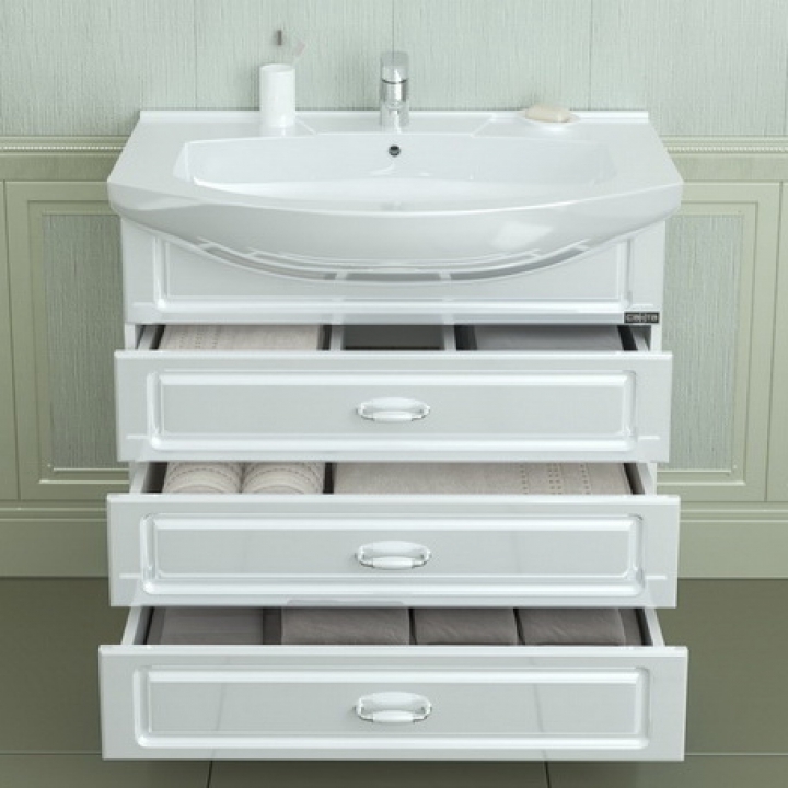 Тумба с раковиной СанТа Верона 85 3 ящика Белая