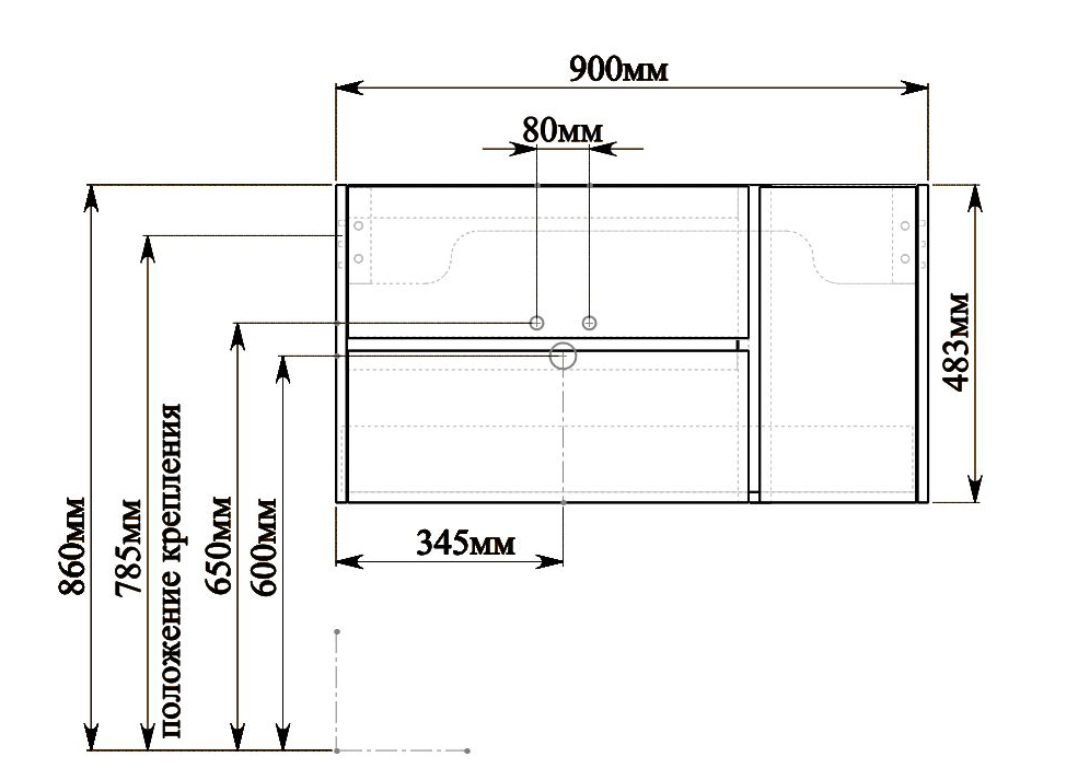 Тумба c раковиной SanVit Мэри-1 90 R - стильная тумба с современным дизайном превосходно дополнит интерьер любой ванной комнаты.